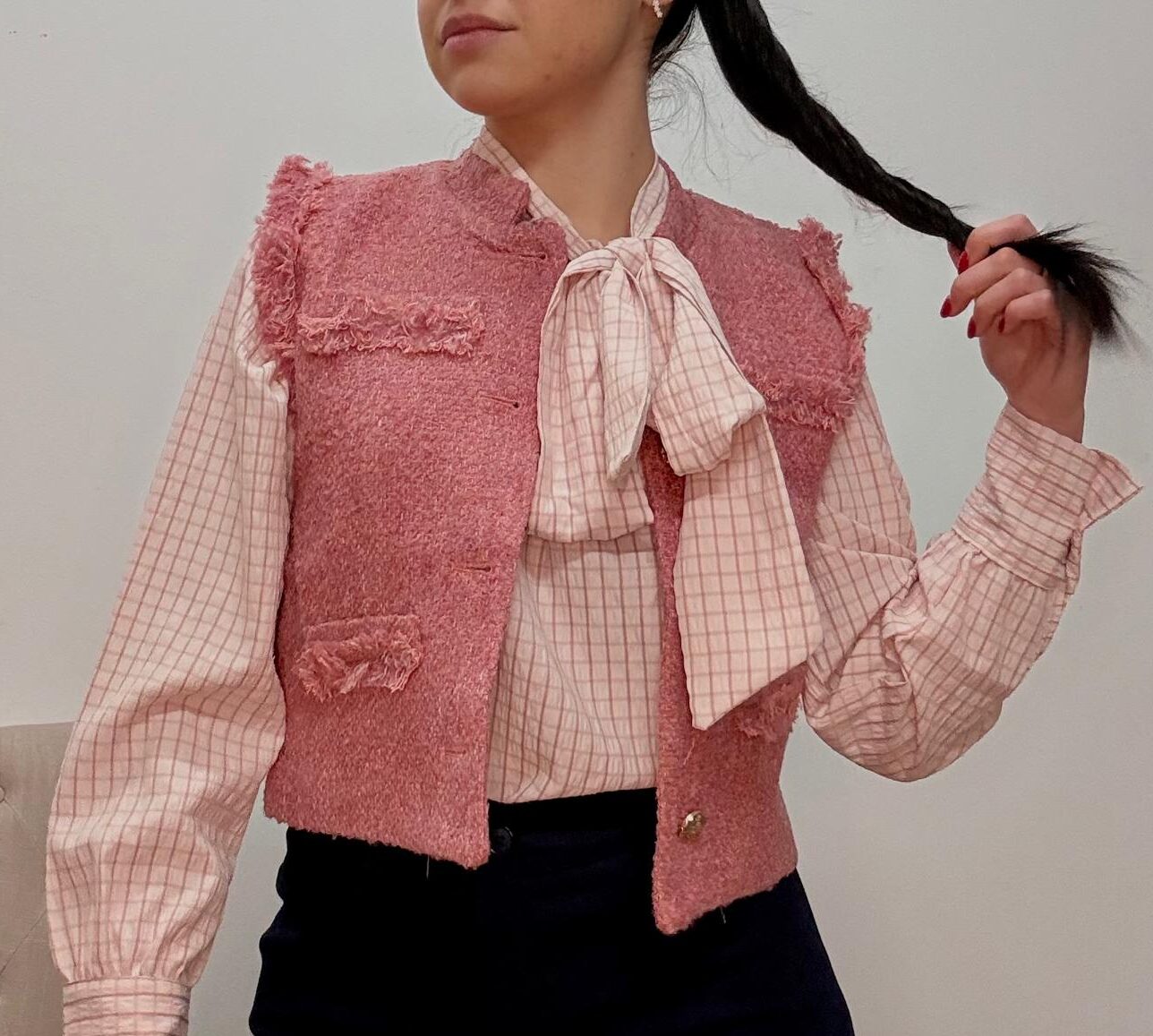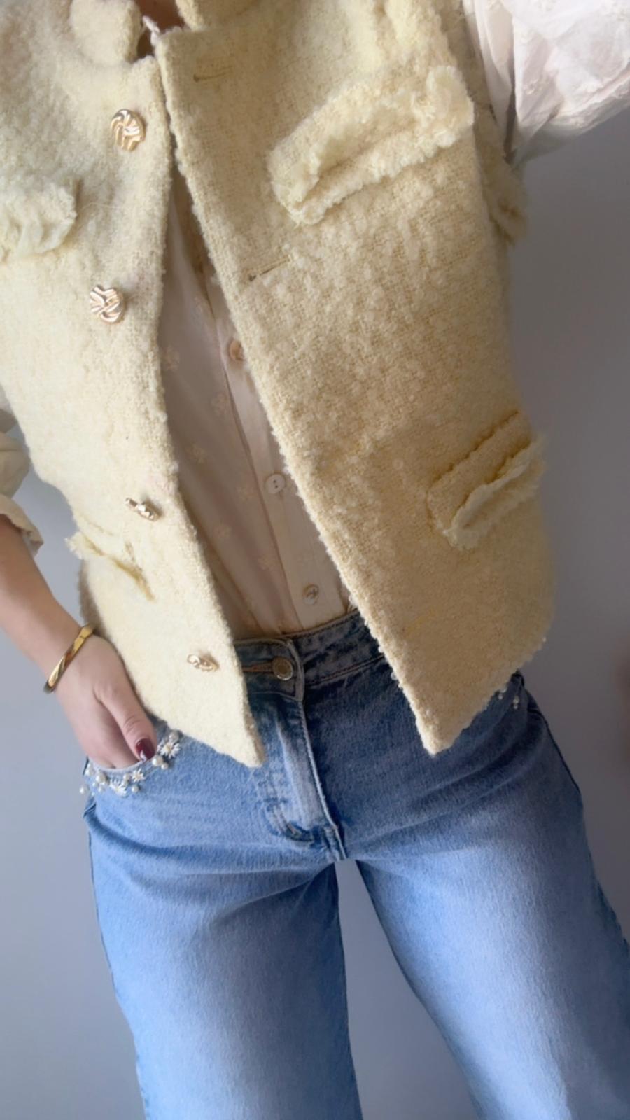 CHALECO CORTO DE TWEED CON FLECOS
