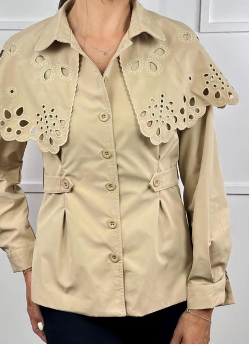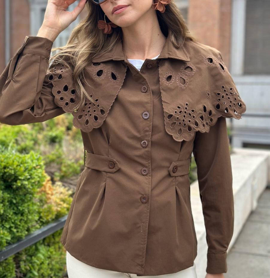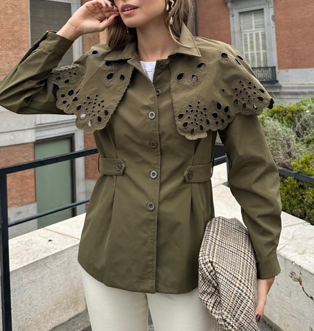CHAQUETA ABOTONADA AJUSTADA A LA CINTURA EN TRES COLORES CON CAPA DESMONTABLE