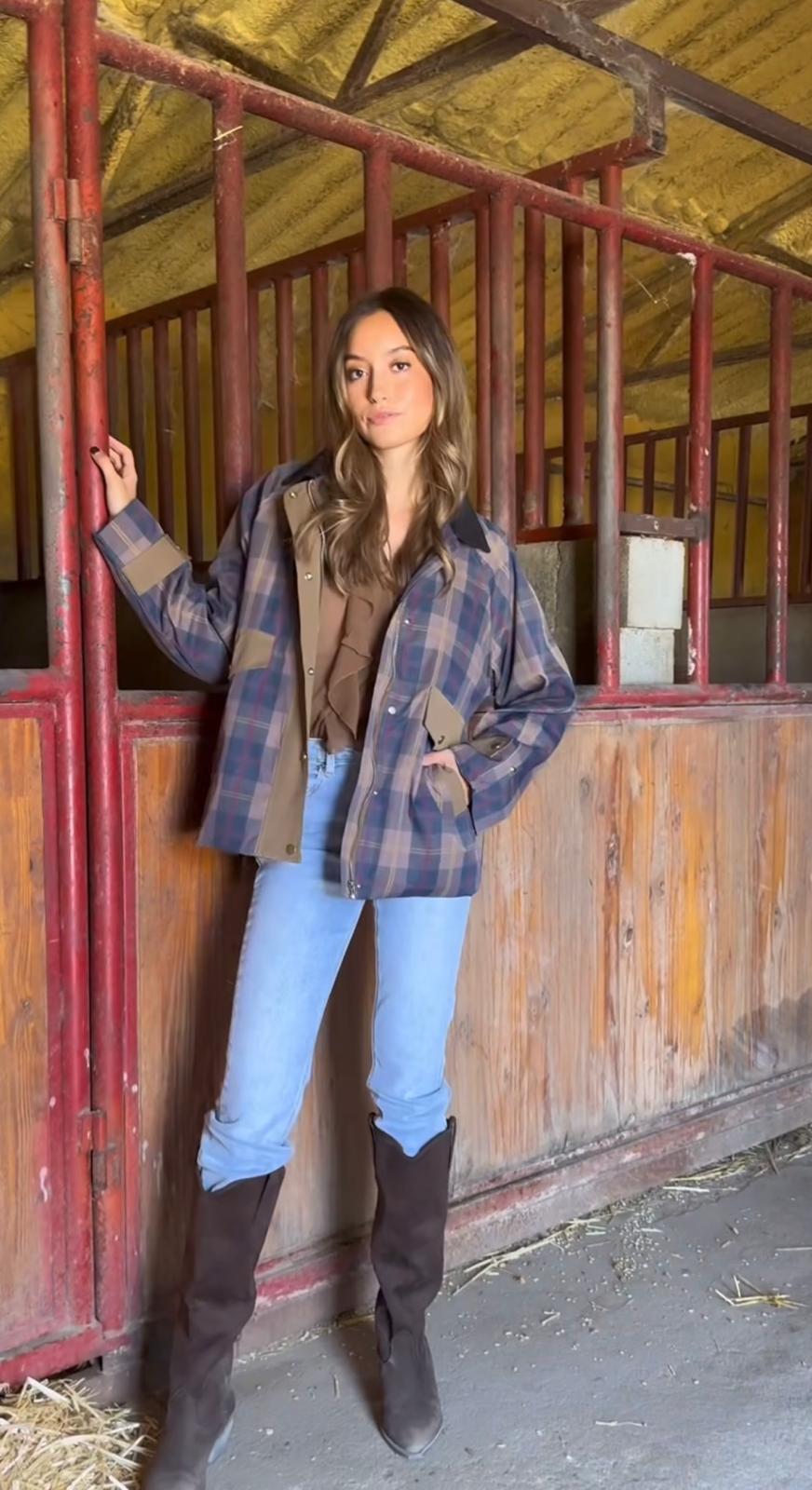CHAQUETA ESTILO ECUESTRO DE INSPIRACION CAMPESTRE, CON DISEÑO TIPO BARN JACKET Y DETALLES FUNCIONALES IDEALES PARA ACTIVIDADES AL AIRE LIBRE