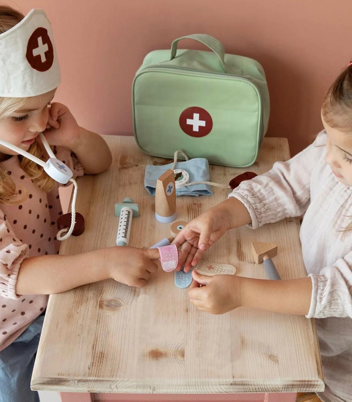 MALETIN DE MEDIOS PERFECTO PARA SIMULAR EL ROL DE DOCTOR. PODRAN TOMAR LA TEMPERATURA A SUS PACIENTES, CONTROLAR SUS LATIDOS, LA PRESION ARTERIAL Y CURAR LAS HERIDAS.