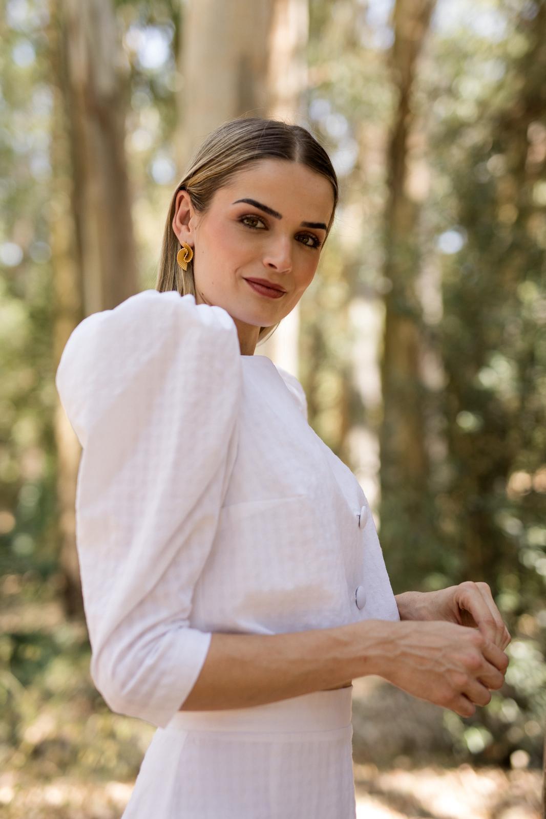CONJUNTO DE DOS PIEZAS COMPUESTO POR TOP ENTALLADO CON CIERRE FRONTAL DE BOTONES FORRADOS Y MANGAS TRES CUARTOS ABULLONADAS EN HOMBROS, Y FALDA MIDI DE CORTE RECTO. CONFECCIONADO EN TEJIDO TEXTURIZADO DE CUADRO VICHY. DISEÑO FEMENINO Y ELEGANTE, IDEAL PARA EVENTOS DE DÍA O LOOKS ESPECIALES.